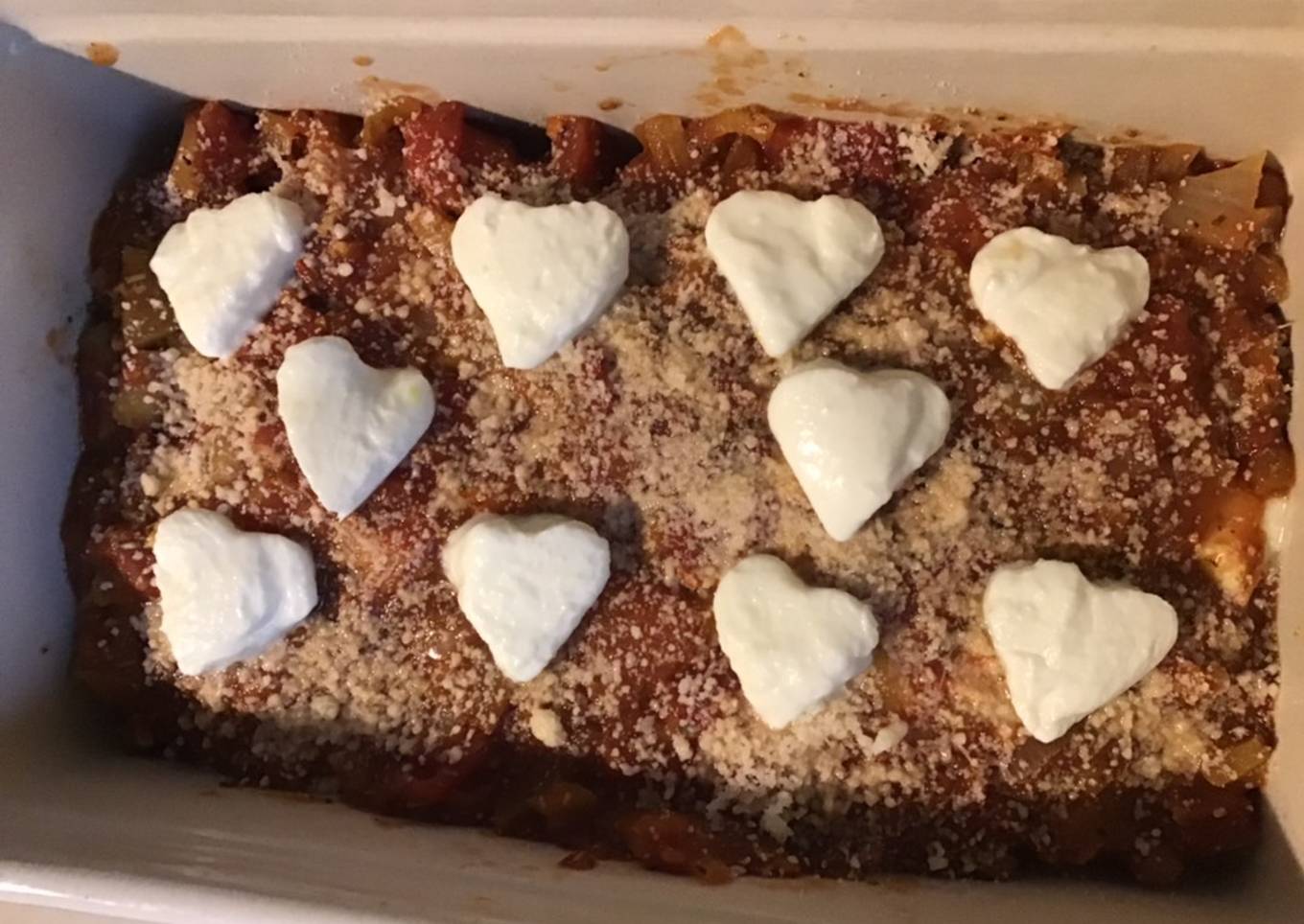 Des petits coeurs de mozzarella pour décorer un gratin savoureux