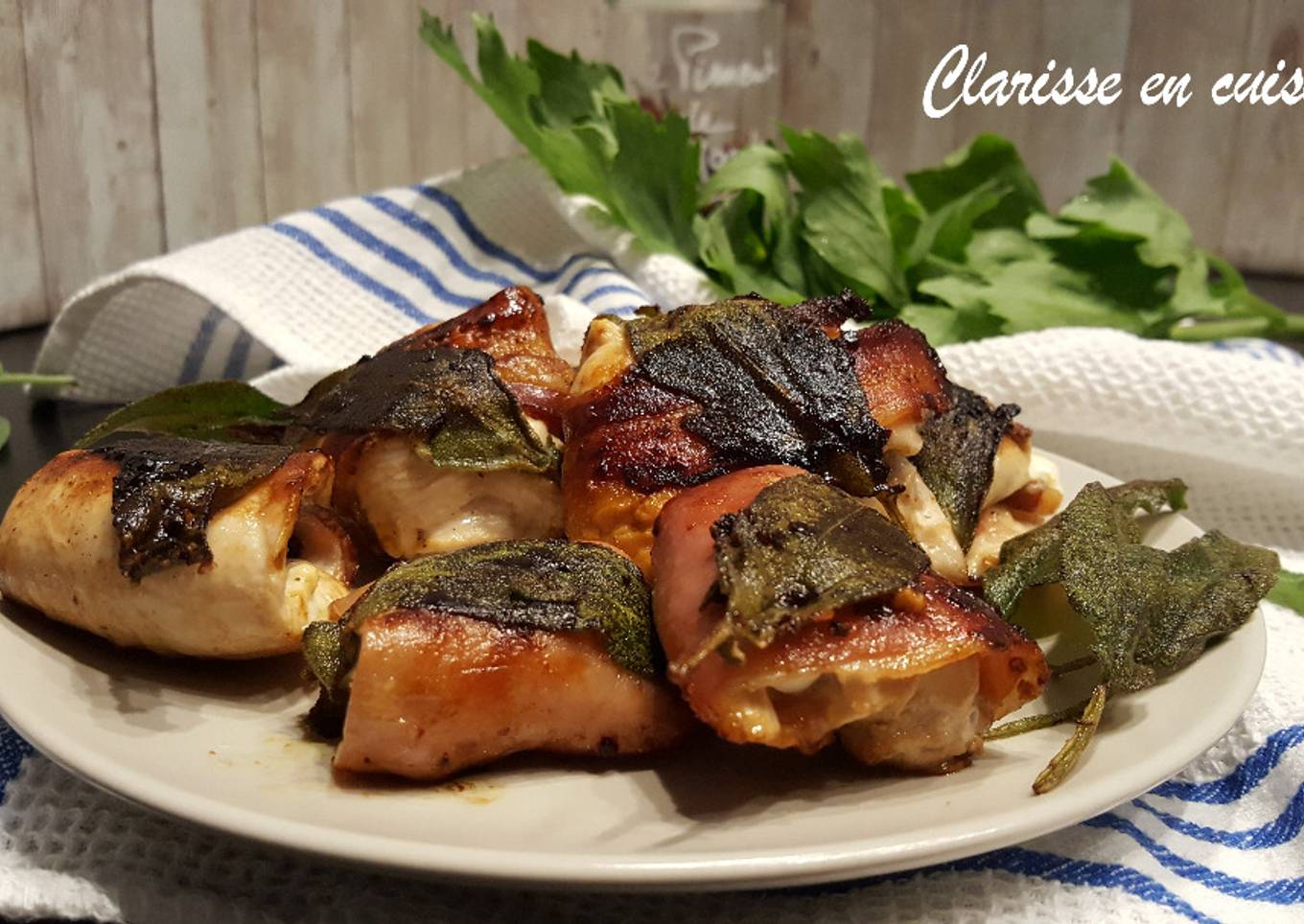 Just in addition, the time it takes to cook Escalopines de poulet aux feuilles de sauge rôties estimated approx 15 mn +20 mn préparation.